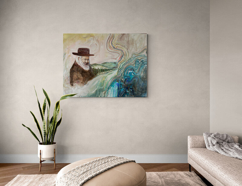 R’ Shayala Kerestirer was a great rabbi who performed many miracles. I used pictures I took when I visited the small village of Kerister (where the tzaddik is buried) as reference for this painting. Surrounded by rolling hills and vineyards, being there felt like visiting another realm